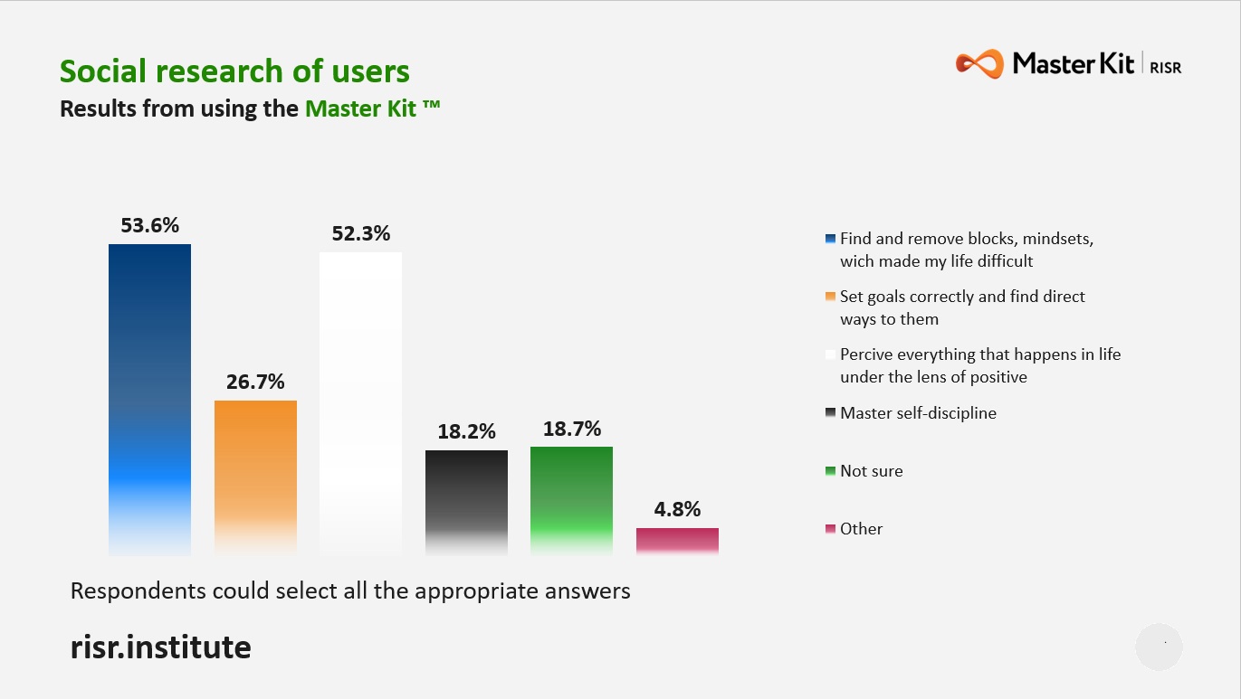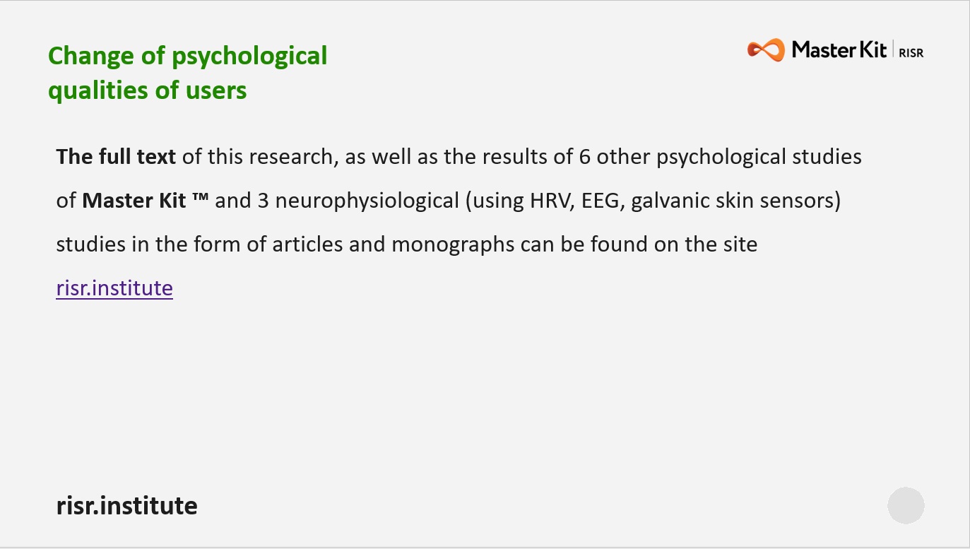 Master Kit uses evidence-based methods based on cognitive behavioral therapy (CBT), Humanistic psychology and Covert speech. The program is constantly being improved and upgraded to integrate new scientific findings.